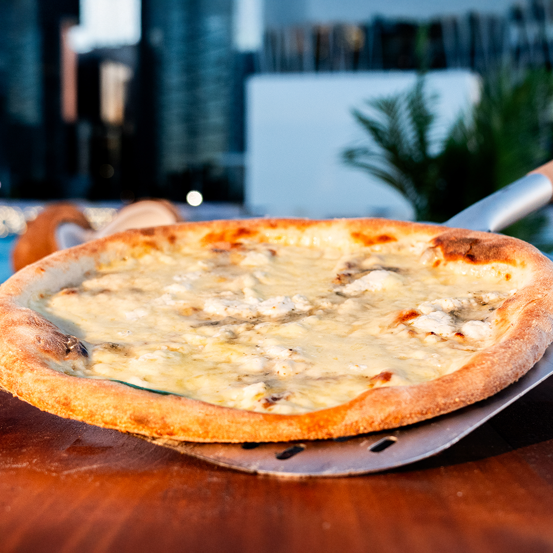 Cream base, Mozzarella di Bufala, Blue Cheese, Parmesan, Goat Cheese, Oregano